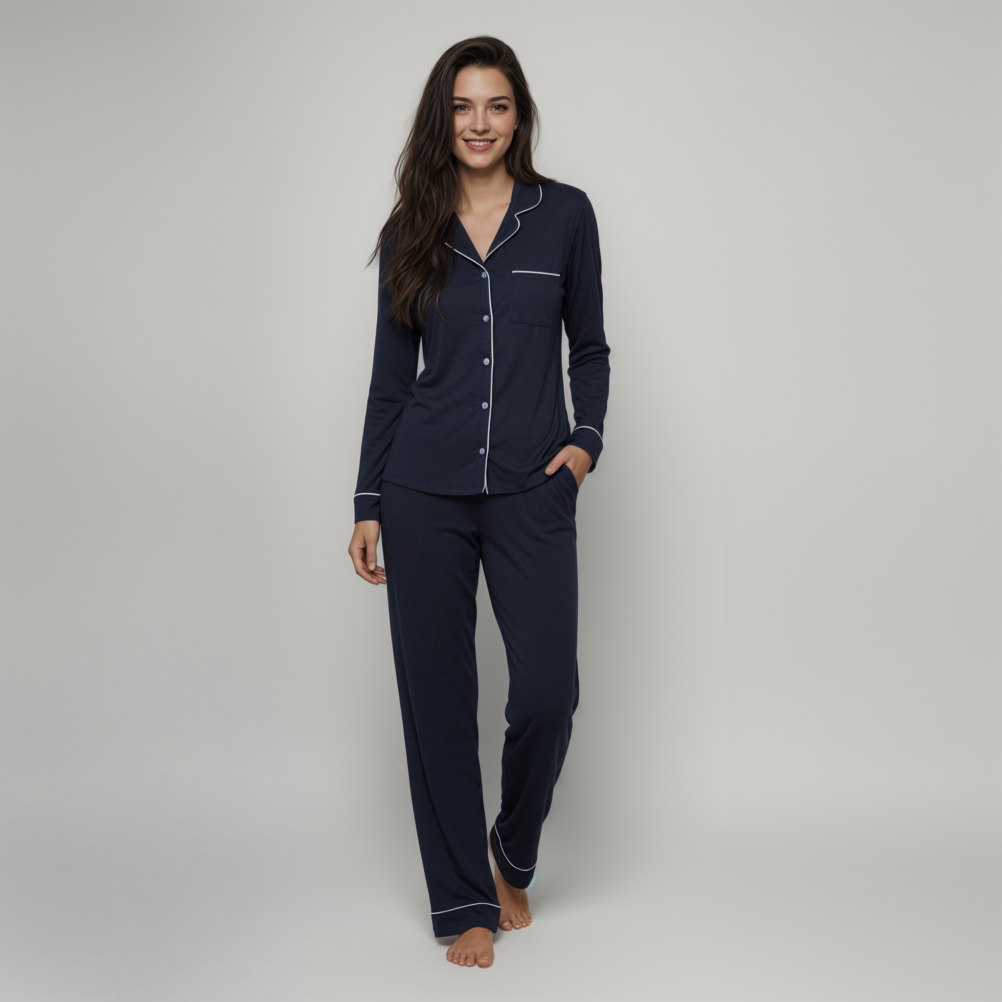 Ensemble de pyjama à manches longues en bambou – Bleu marine