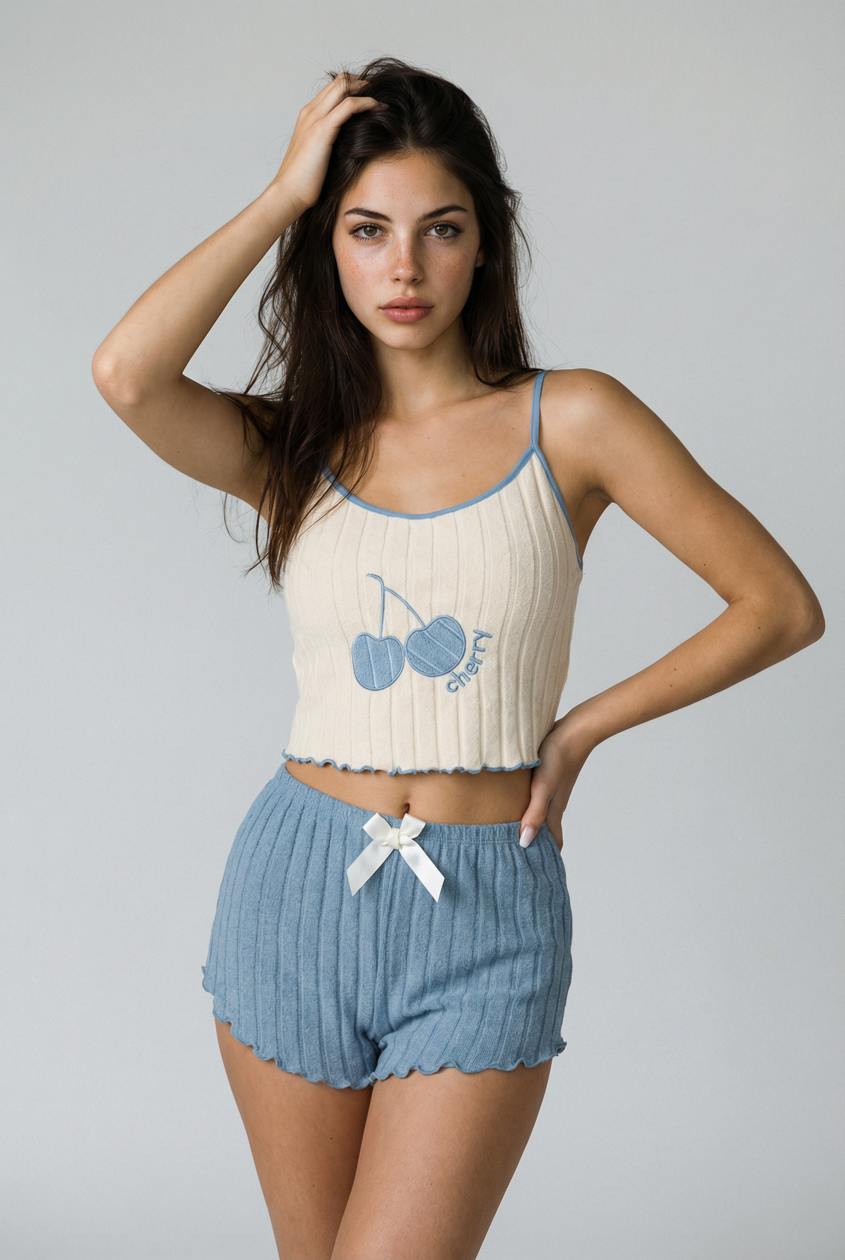 Chic rencontre confortable dans le Midnight Ribbed Pajama Set. Conçu avec un tissu en maille côtelée douce et fini avec une délicate bordure en dentelle noire, cet ensemble deux pièces apporte de l'élégance à votre routine nocturne. Le haut cami court dispose de bretelles réglables et d'un petit nœud décoratif, tandis que le short taille haute assorti assure une coupe flatteuse et confortable. Parfait pour se détendre avec style ou profiter d'une matinée tranquille à la maison.